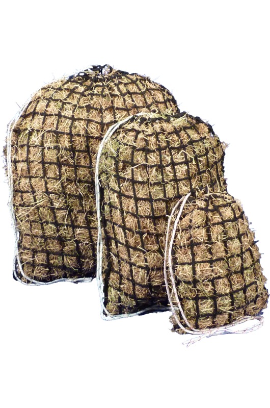 The drawstrings on Greedy Steed Premium Nets are a different colour to the net, so they are easier to find. The drawstring is made from polyester rope, the same as used in quality rope halters, which is easy to tie and untie. The drawstrings are long to make tying up a breeze.